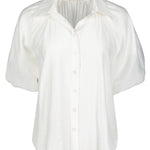 This airy button-front blouse is designed with a fluid silhouette and subtle texture for an effortlessly polished look. Featuring softly draped sleeves and gentle gathering at the shoulders, it brings a feminine touch to a timeless staple. Lightweight and easy to style, it pairs beautifully with tailored trousers, denim, or layered under a blazer.