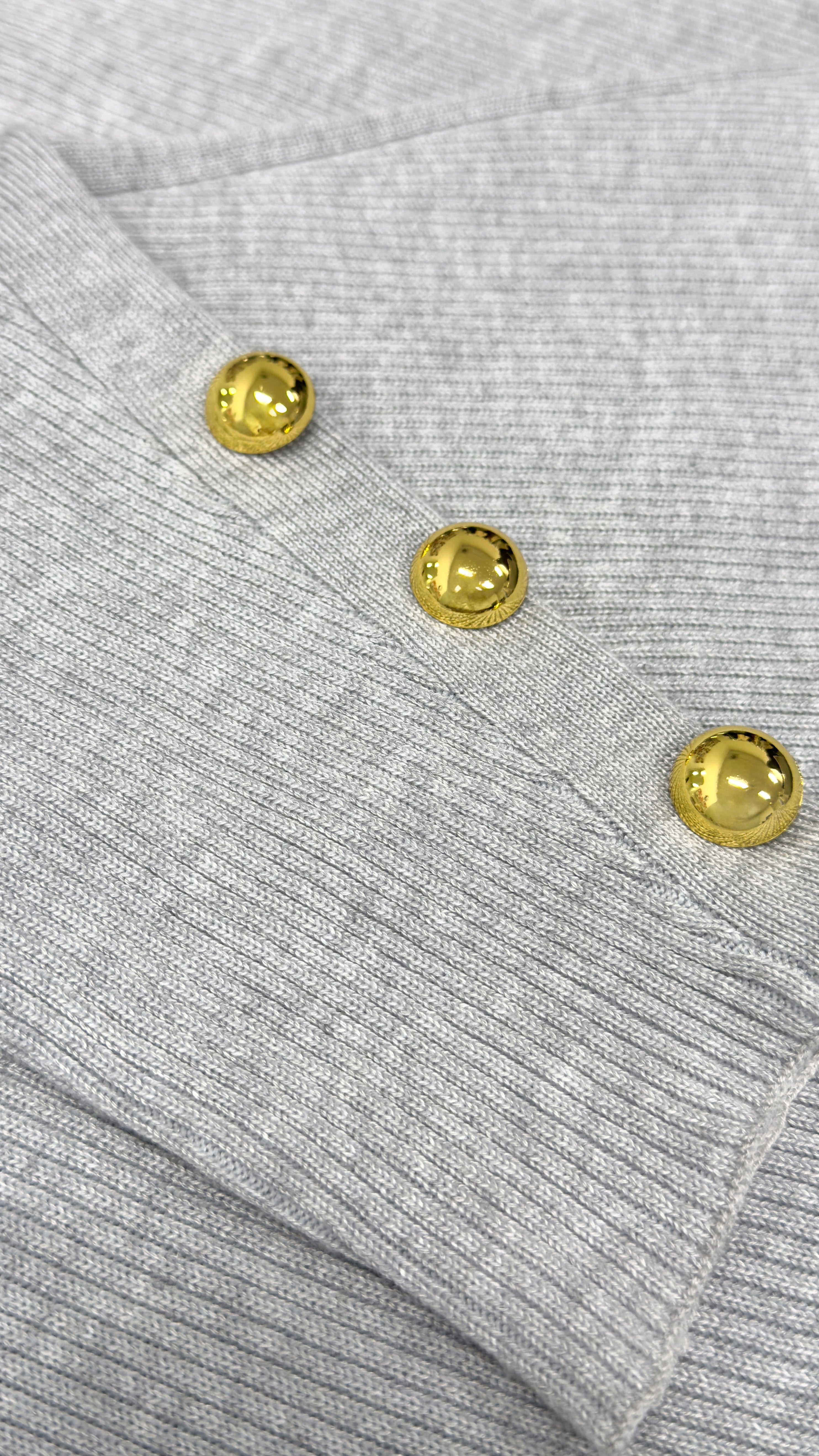 -Gold button detail at the sleeves