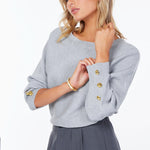 The Cassidy Sweater is crafted from a rib knit with an elegant boat neckline that anchors the look for a cozy yet shapely piece you can layer in every day. Finished with a relaxed fit and button detailing at the sleeves for a modern refined look.