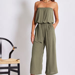 Some things are as easy as a jumpsuit. The Free Spirit Jumpsuit is the ultimate one-and-done piece with waist-defining self belt, finished with wide legs. This effortless piece helps you get out the door with ease and major style.