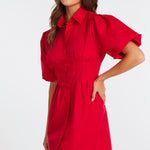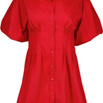 Bold yet refined, this red button-front dress offers an easy, flattering shape with subtle volume through the sleeves. Wear it with sandals for daytime ease or elevate it with heels and a structured bag for a confident, statement look.