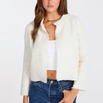 An effortless layer designed to go wherever your day takes you. This lightweight, deconstructed tweed jacket features subtle matte paillette detailing for a soft, understated shine that elevates without overpowering. Relaxed yet refined, it’s the kind of piece you can throw on over a simple tee and denim for everyday ease, or layer over a blouse with tailored trousers when you want something more polished.