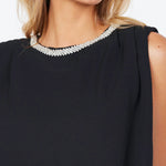 The Monroe Top, reimagined with an embellished neckline, designed with a relaxed boxy fit, finished with flattering pleating details at the shoulders. Style it with a wide leg pant for evening elegance—or wear it with jeans for a cool night-out look.